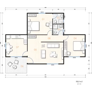 98.0 m2 Yaşam Alanına Sahip Tek Katlı 2+1 Çelik Konstrüksiyon Ev Modelimiz Uygun Fiyat ve Kolay Kurulum