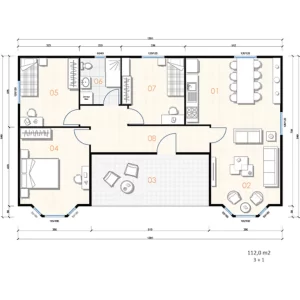 112.0 m2 Yaşam Alanına Sahip Tek Katlı 3+1 Çelik Konstrüksiyon Ev Modelimiz Uygun Fiyat ve Kolay Kurulum