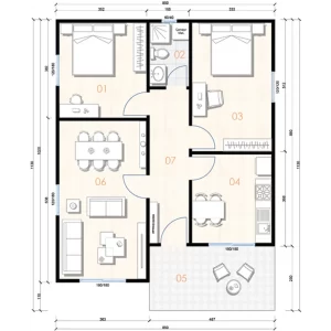 92.0 m2 Yaşam Alanına Sahip Tek Katlı Çelik 2+1 Konstrüksiyon Ev Modelimiz Uygun Fiyat ve Kolay Kurulum