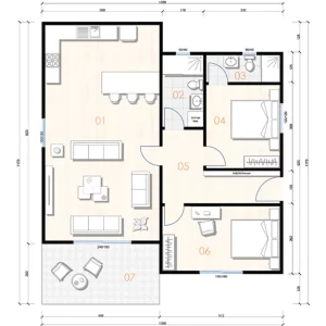 105.0 m2 Yaşam Alanına Sahip Tek Katlı Çelik 2+1 Konstrüksiyon Ev Modelimiz Uygun Fiyat ve Kolay Kurulum