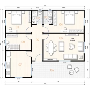 124.0 m2 Yaşam Alanına Sahip Tek Katlı 3+1 Çelik Konstrüksiyon Ev Modelimiz Uygun Fiyat ve Kolay Kurulum