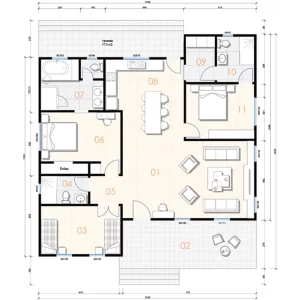 171.0 m2 Yaşam Alanına Sahip Tek Katlı 3+1 Premium Model Çelik Konstrüksiyon Ev Modelimiz Uygun Fiyat ve Kolay Kurulum